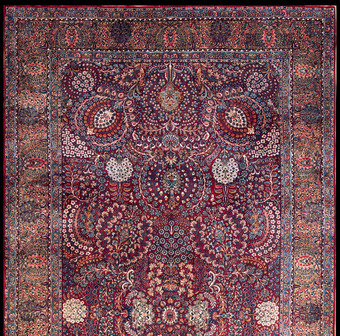 Kerman is the capital city of the province of the same name. Kerman rugs have already been mentioned by the secretary of Shah Abbas I. (1587-1629) who spoke of "rugs with gold and silber threads". There are Kerman rugs preserved to this day since the 16th century throughout each century. Since the end of the 19th century until today Kerman with its large and esteemed rug manufactories is considered to be one of the most significant carpet production centers of Iran. Kerman is probably the only larger city of Iran whose population in its majority lives of carpet production. The most famous of the ca. 30 villages around Kerman in which rugs are made is called Ravar. The Kerman rug is often described as the "King of the carpets - the carpet of Kings". The Persian knot is used making them as opposed to the more spread Turkish knot which is more often used with Persian rugs.